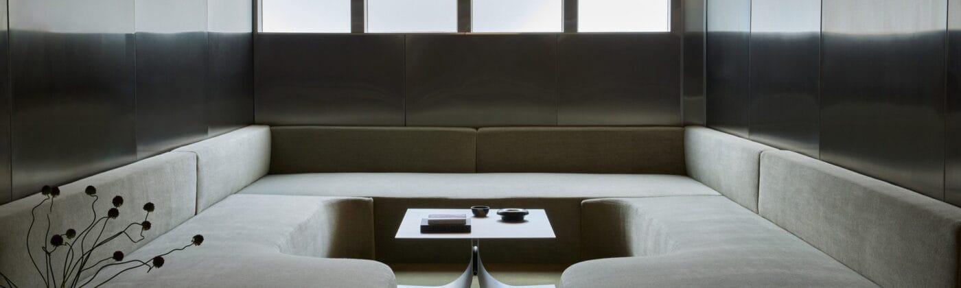 L’une des plus grandes réussites de ce projet réside dans son incroyable palette de matériaux. 22RE a orchestré une véritable symphonie de textures qui crée une ambiance à la fois industrielle et chaleureuse. Au sol, le béton brut d’origine a été conservé et poli, servant de toile de fond neutre et robuste. En contraste direct, le bois de chêne blanc apporte une touche de douceur et de lumière, utilisé pour les placards et une partie du mobilier sur mesure. L’aluminium sculptural des bureaux ajoute une dimension artistique et contemporaine, reflétant la lumière et l’énergie du lieu, un détail de conception salué par Wallpaper.