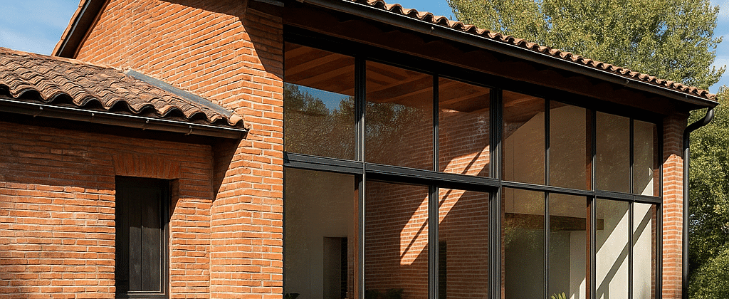 - Larges ouvertures vitrées orientées pour capter la lumière du Lauragais et prolonger les vues vers l’extérieur.